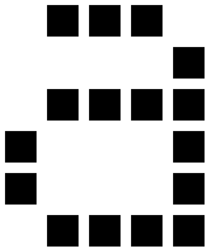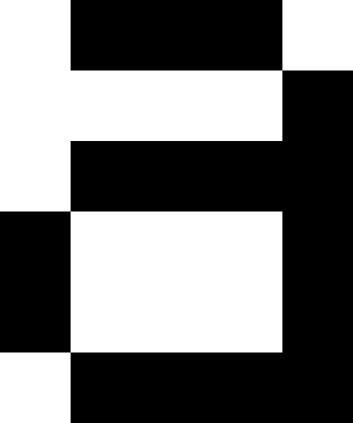 第一行由一个白色像素,三个黑色像素,再一个白色像素所组成。