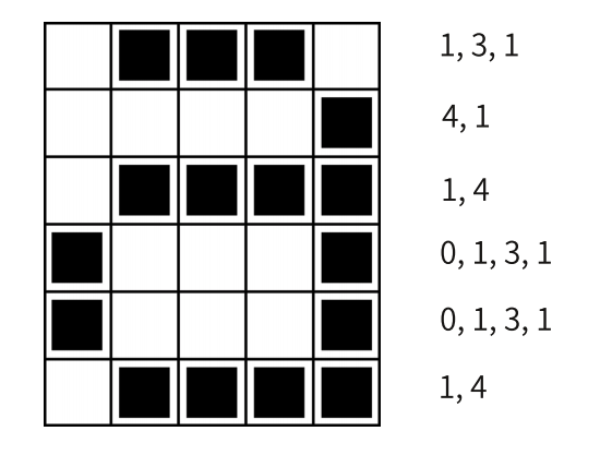 第一个号码必须是白色像素的数目。如果第一个像素是黑色的,那该行会从0开始。