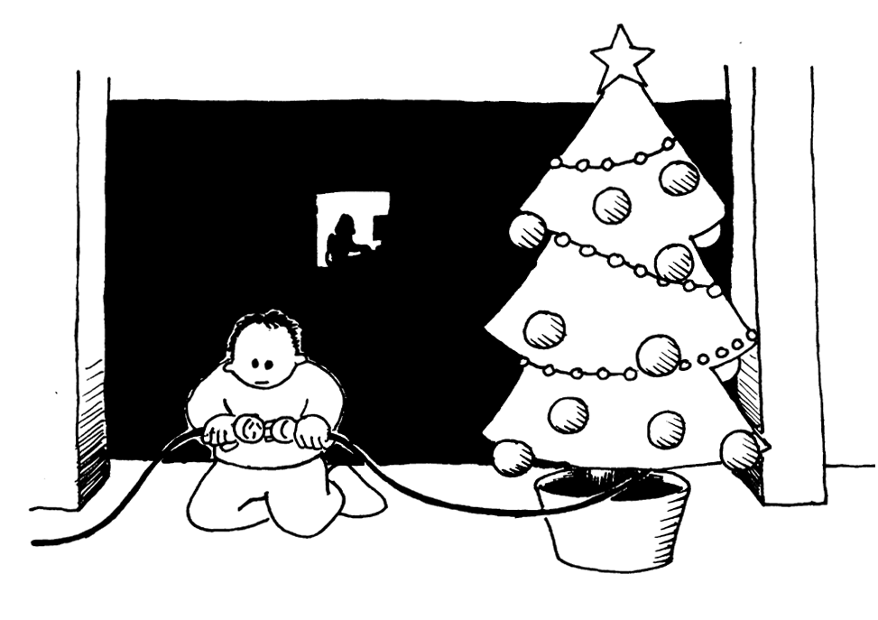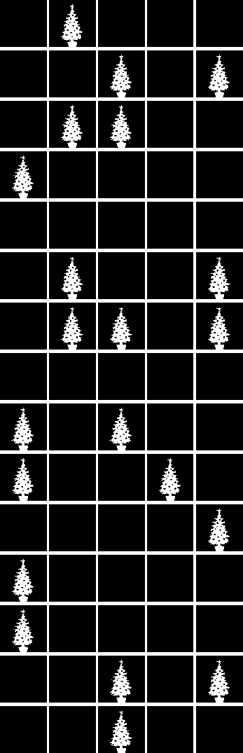 圣诞节快到了,汤姆却被困在了百货公司的顶楼了,他想带着他的礼物回家。汤姆试过大声的呼救,但是附近根本没人听见,他该怎么办呢?他看到对面大楼里有一些电脑工程师正在深夜工作,汤姆看了一下它的周围,然后灵光一现——他可以用圣诞树上面的等传送信息给对面大楼里正在工作的女士!他找到了所有的灯泡,然后插上电源,这样他就可以开关这些灯泡了。他编写了一段二进制代码,确定对面那位女士可以懂得他的信息。你把破译这段代码吗?