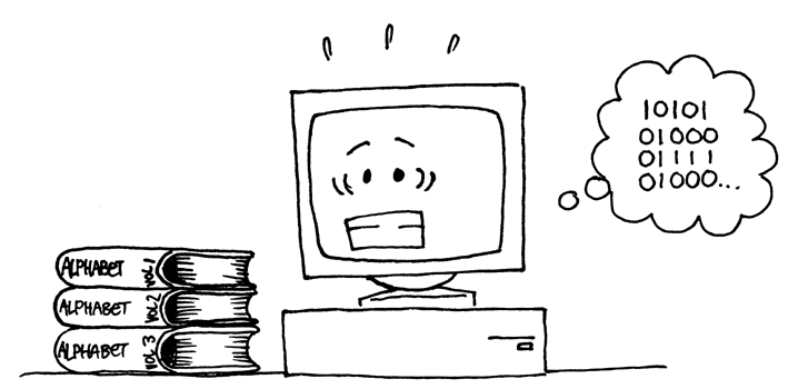现在很多电脑都是用「美国信息交换标准代码」(American Standard Code for Information Interchange, 又称为ASCII码)来表示每一个字母。但在一些不说英文的国家则必须使用更长的编码(比如中文)。